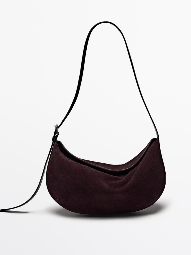 The half-moon bag remains a top choice for its sleek, minimalist silhouette and functional design. Massimo Dutti split suede shoulder bag ($159)