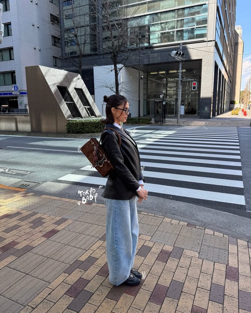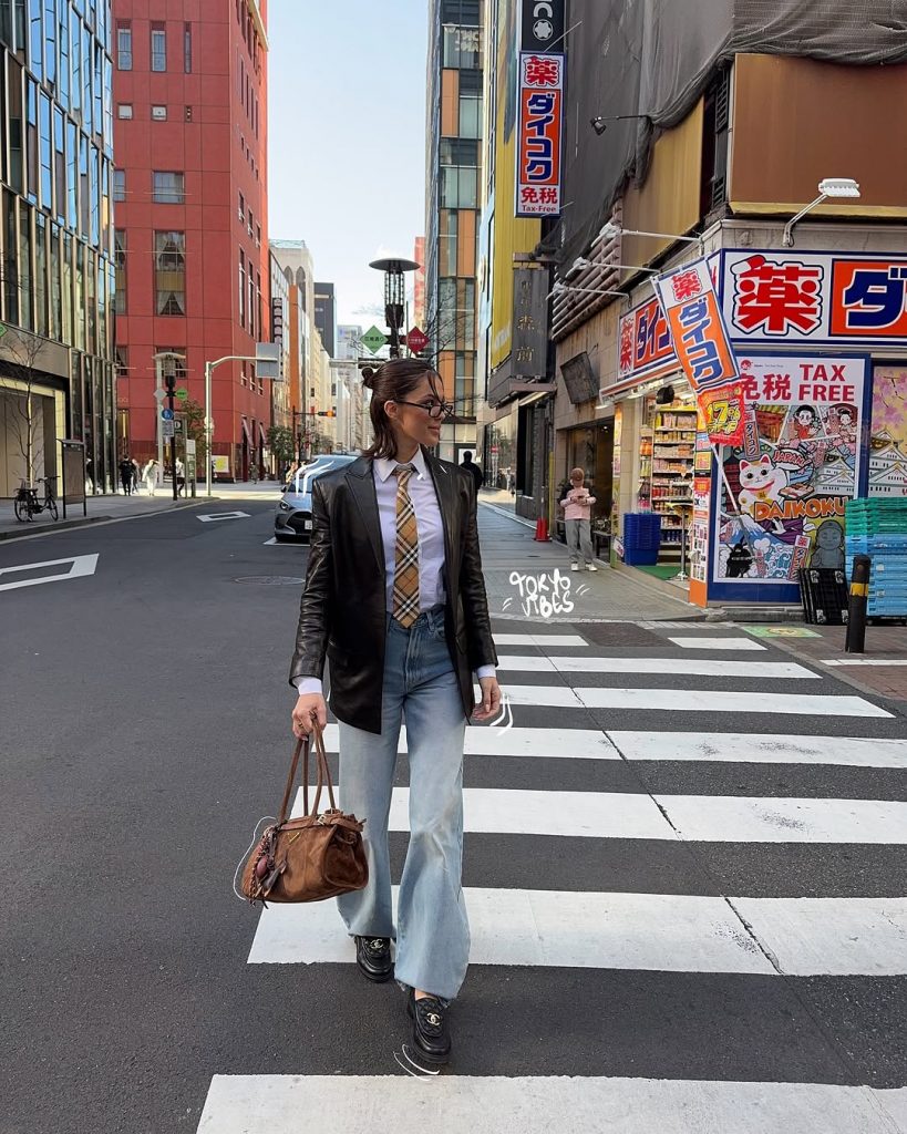 The former Miss Universe turns heads in Tokyo with this season’s top trend: elevated office wear