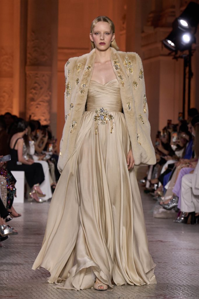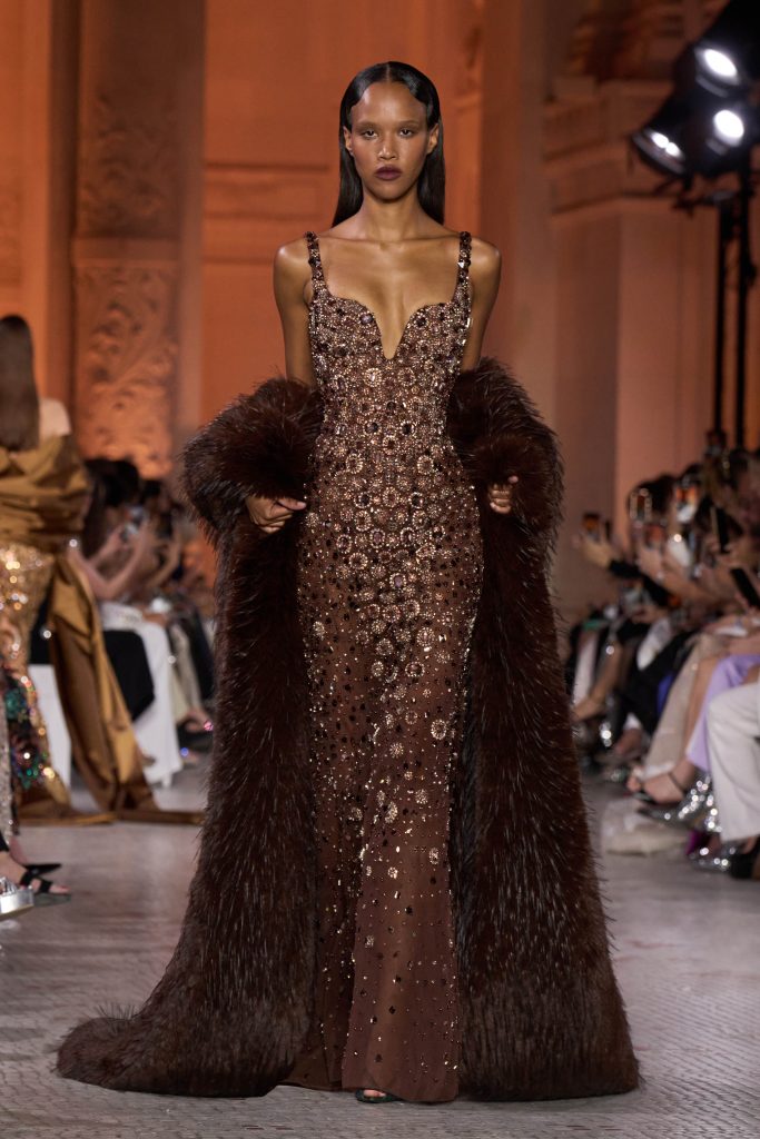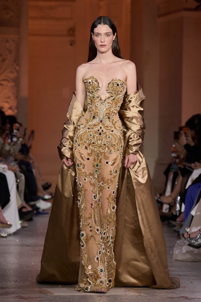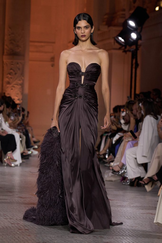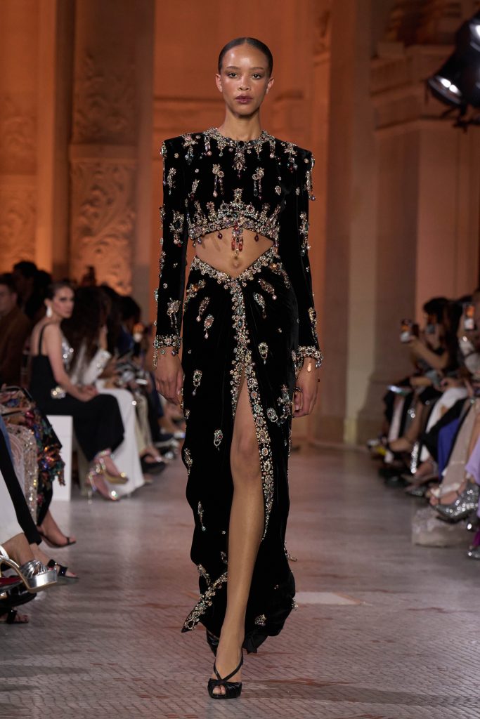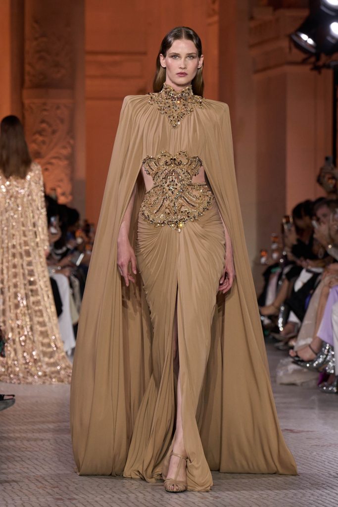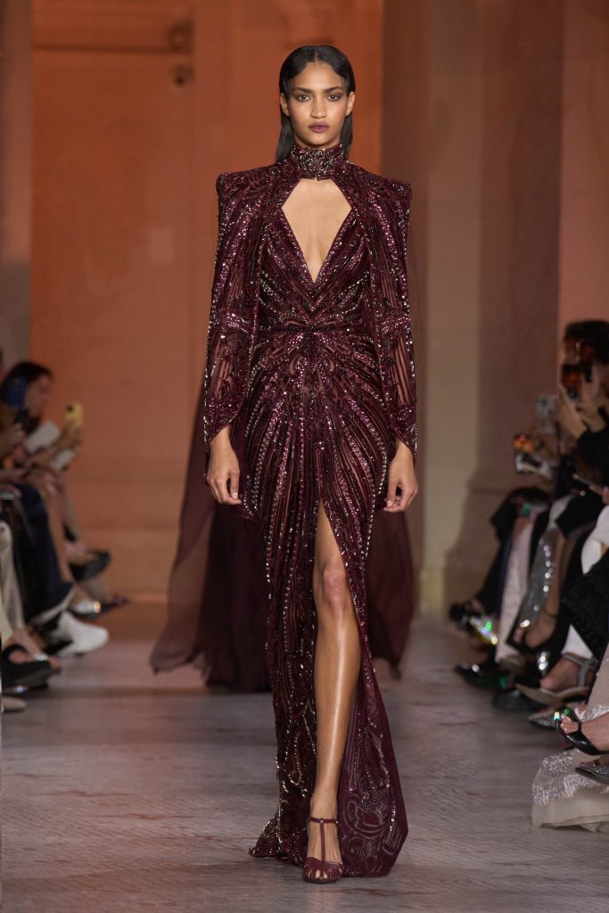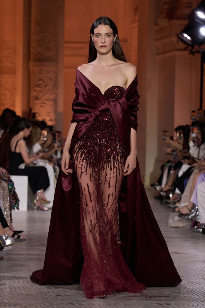 Old Hollywood glamour reigned supreme in Zuhair Murad’s “A Sheer Desire” collection. It drew inspiration from Tinseltown icons such as Rita Hayworth, Greta Garbo, and Marlene Dietrich, resulting in a collection fit for a true femme fatale.