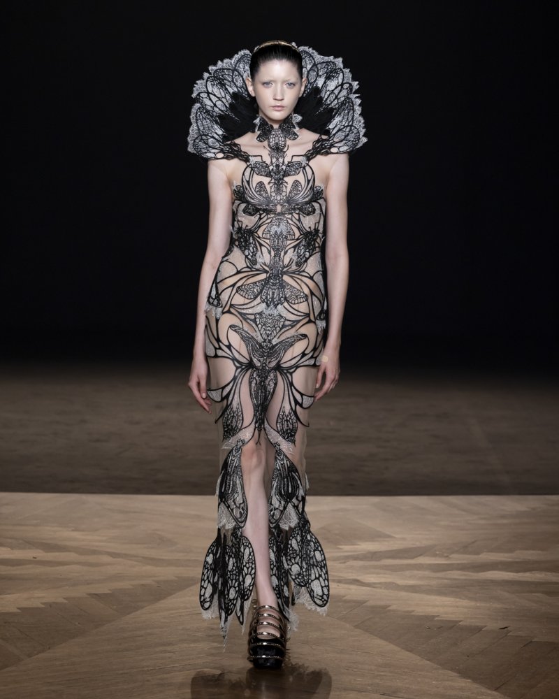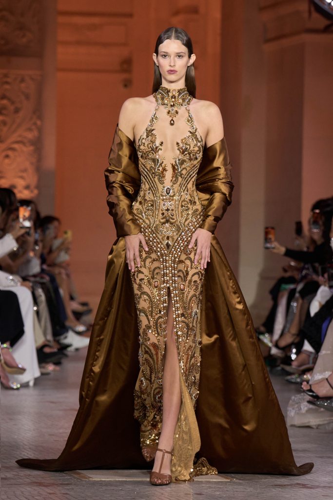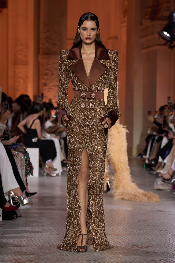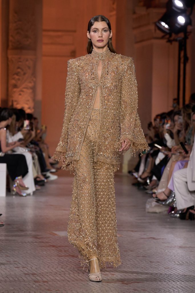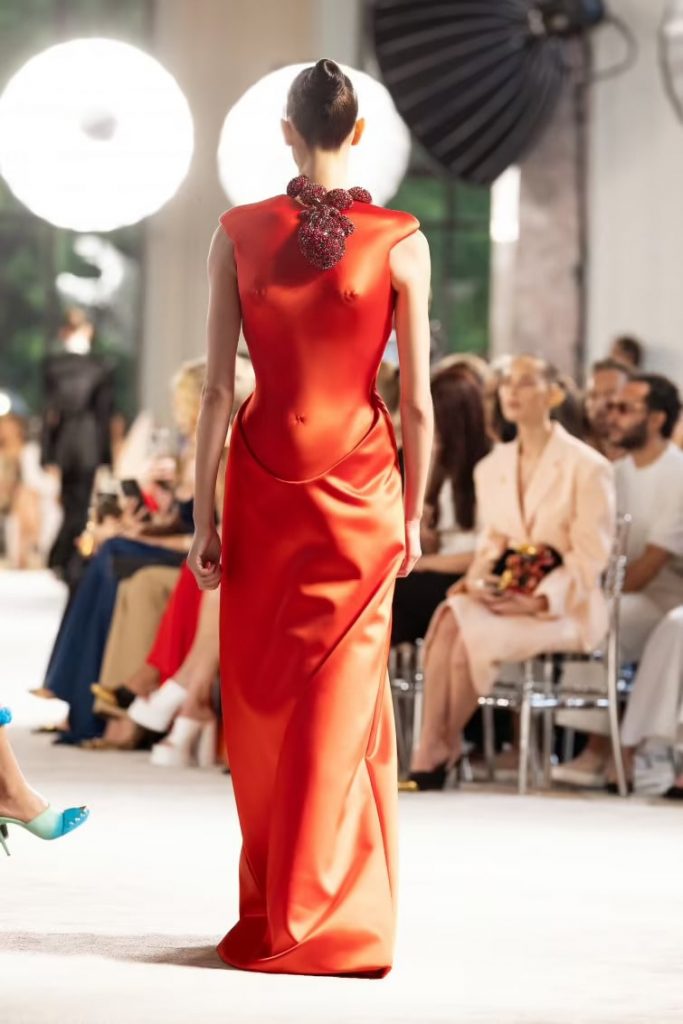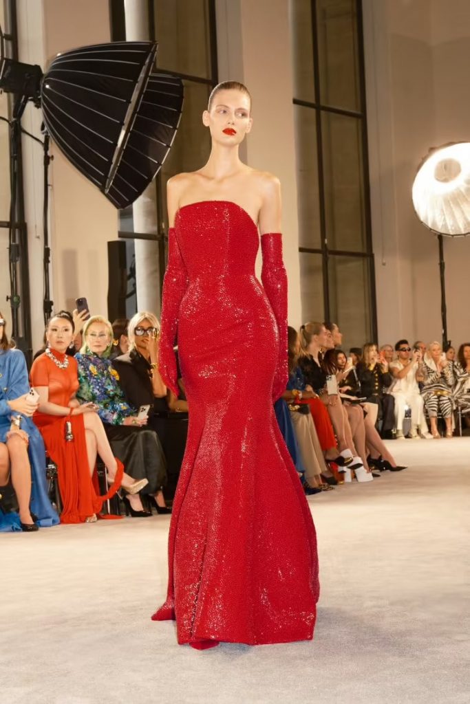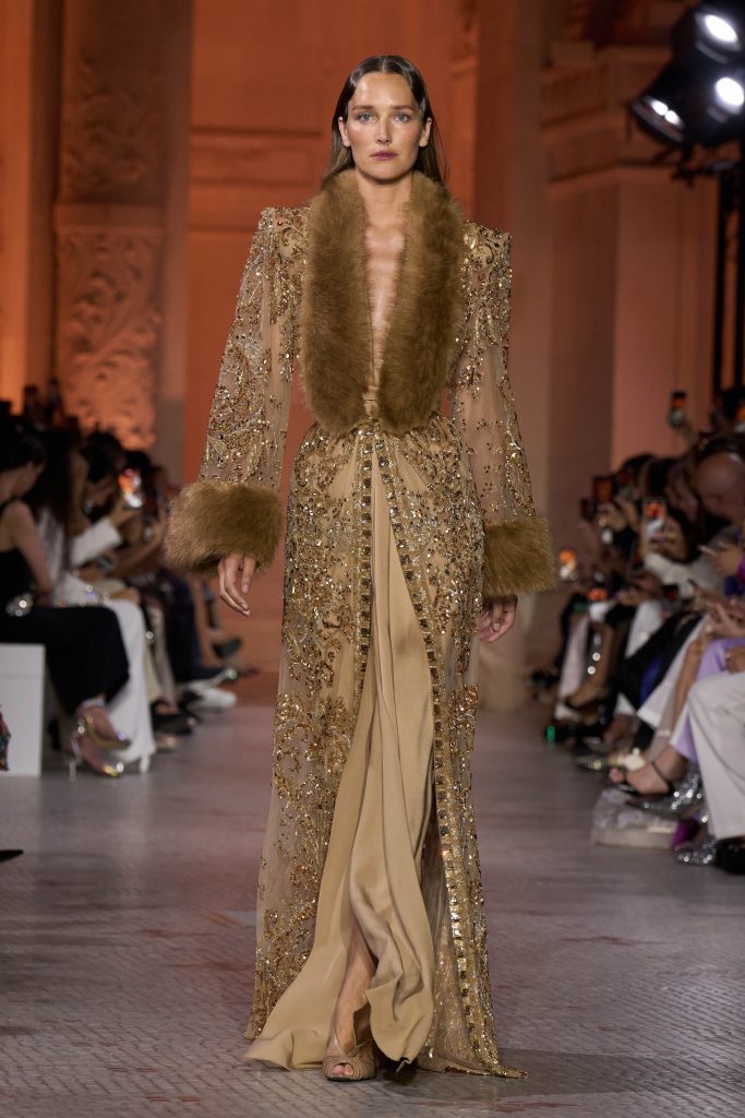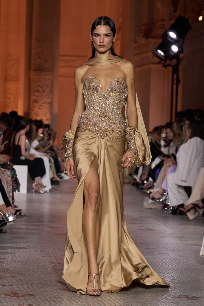 Old Hollywood glamour reigned supreme in Zuhair Murad’s “A Sheer Desire” collection. It drew inspiration from Tinseltown icons such as Rita Hayworth, Greta Garbo, and Marlene Dietrich, resulting in a collection fit for a true femme fatale.
